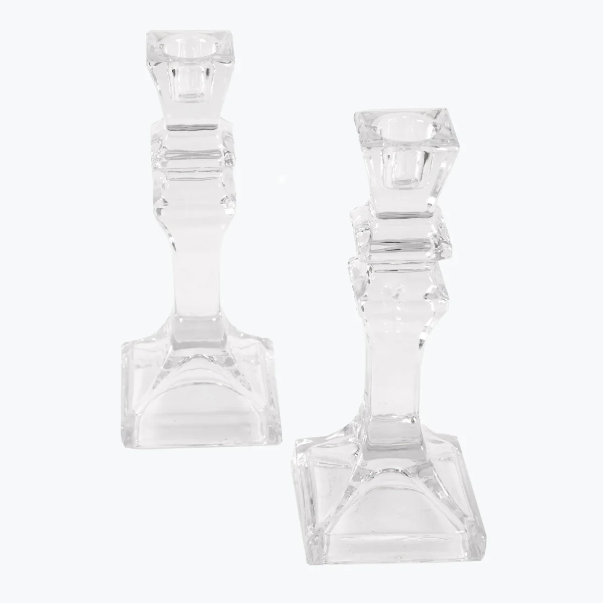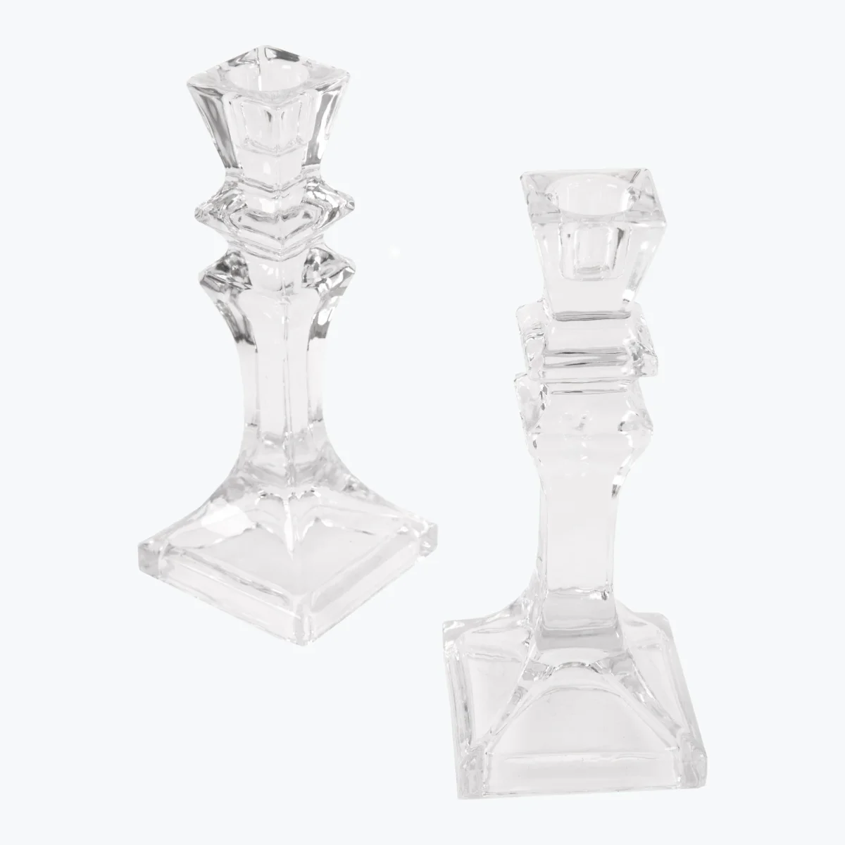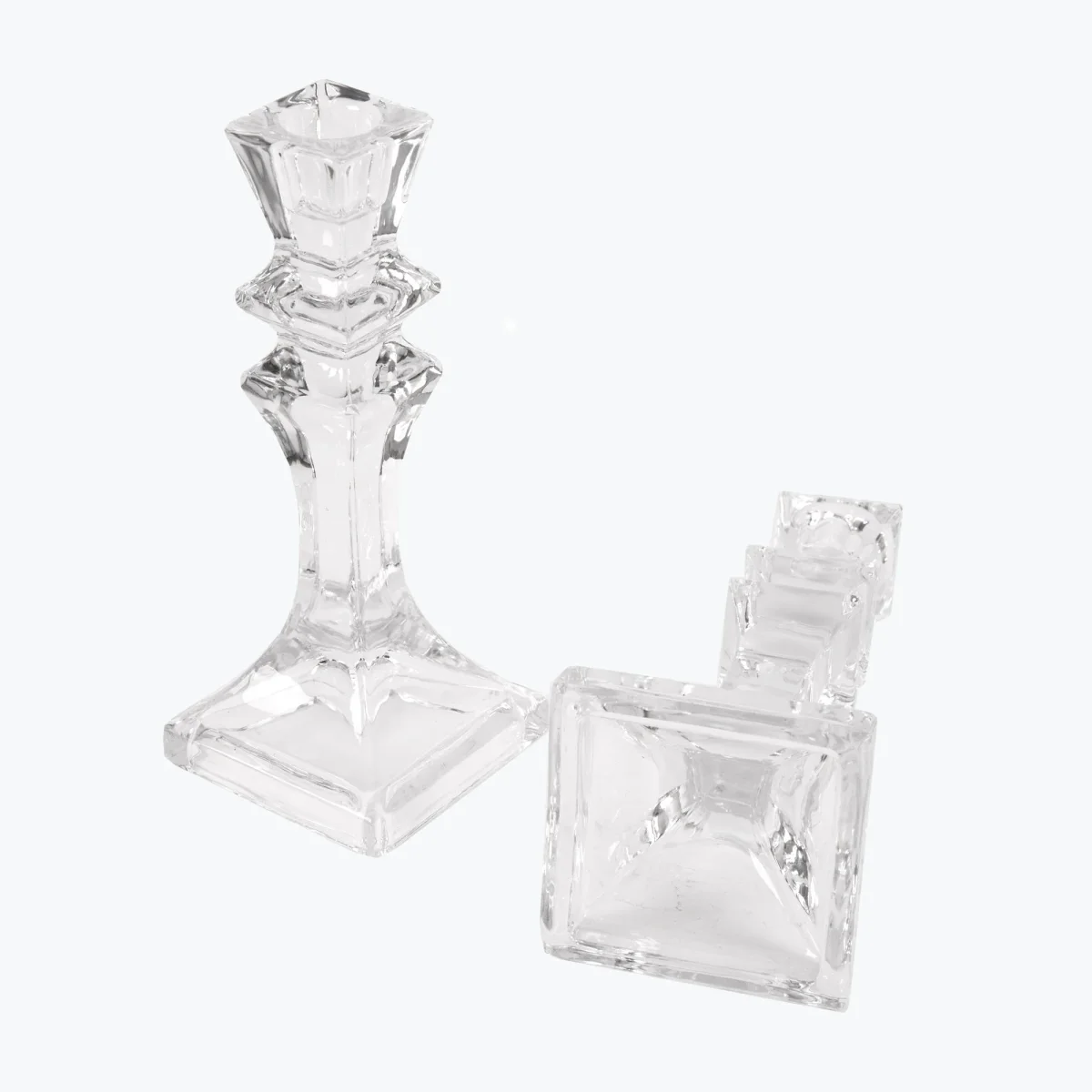 Eleganta och klassiska ljusstakar i pressglas med snygg utformning. Underbart fina för sig själva, tillsammans med andra produkter på ett dekorationsfat eller på ett festdukat bord.