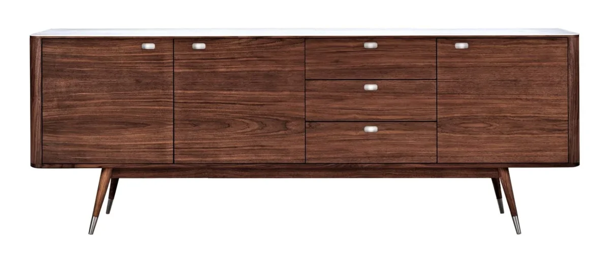 AK 2660 är en snygg och stilren skänk formgiven av Nissen & Gehl för danska möbelproducenten Naver. Skänken tillverkas i massivt trä som kompletteras av en elegant toppskiva i det slitstarka kompositmaterialet Corian. AK 2660 har flera praktiska lådor och skåp som har vackra handtag med detaljer i Corian som matchar toppskivan.