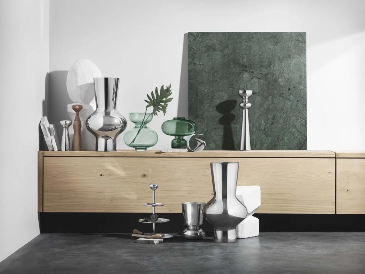 Alfredo Etager, formgiven av Alfredo Häberli för Georg Jensen. Ett stilrent kakfat i flera våningar där man kan lägga upp godsaker och plockmat på. De rundade handtaget i toppen efterliknar övrig Alfredo-design och går därför utmärkt att kombinera med dessa.