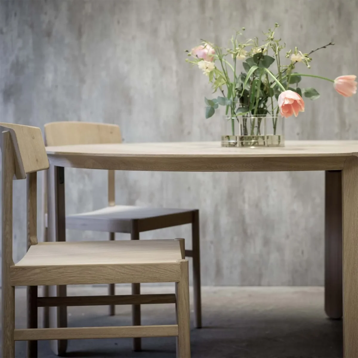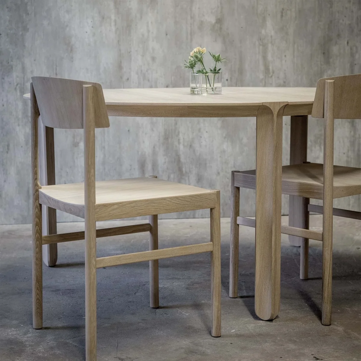 Amor runt matbord är formgivet av Pierre Sindre för Mavis. Bordet har en skandinavisk känsla som utmärks av sin enkelhet och det gedigna hantverket. Matbordet finns även i en större variant, Amor ovalt matbord.