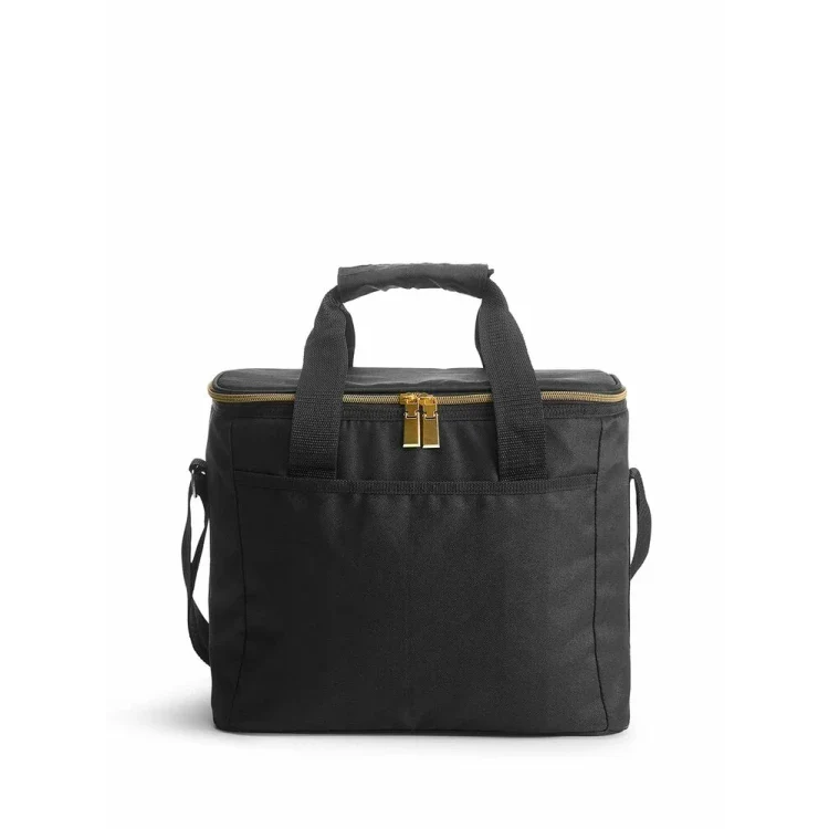 Rymlig och stilren kylväska i svart med läckra detaljer i guld. Praktiskt med både bärhandtag och justerbart axelband. Rymmer 20 liter.
