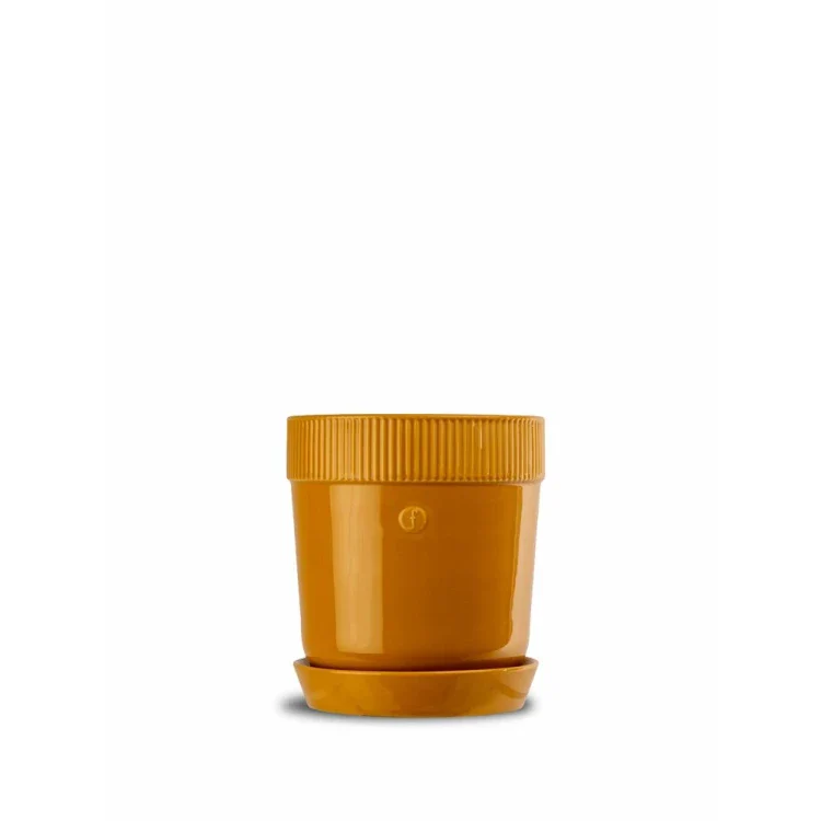 Elise kruka med fat har alla rätt. Den kombinerar designen av färg, form och detaljer med praktiska inslag som dräneringshål och ett fat som går högre upp. Elisa kruka har en mjukt rundad form med enkla raka snitt och är tillverkad i klassiskt stengods. Krukan är dekorerad med ett emblem och Sagaforms karakteristiska rand och har sedan glaserats i vackra och naturnära kulörer. En kruka som blir ett varmt inslag i alla hem. Elise finns i olika storlekar.