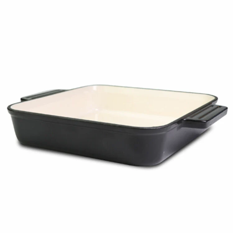 Ugnsform av Gjutjärn. Emaljerat i högsta kvalité. Utformad för att leda och hålla värmen under matlagning. Formen är emaljerad på både insidan och utsidan, har en fin design för att direkt ställa fram för servering på bordet.