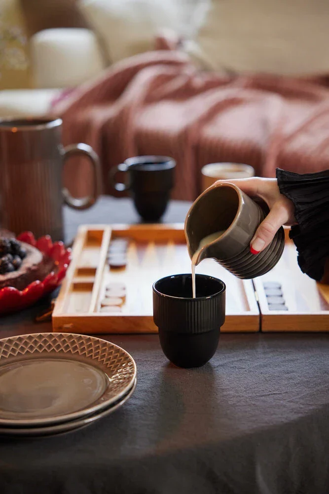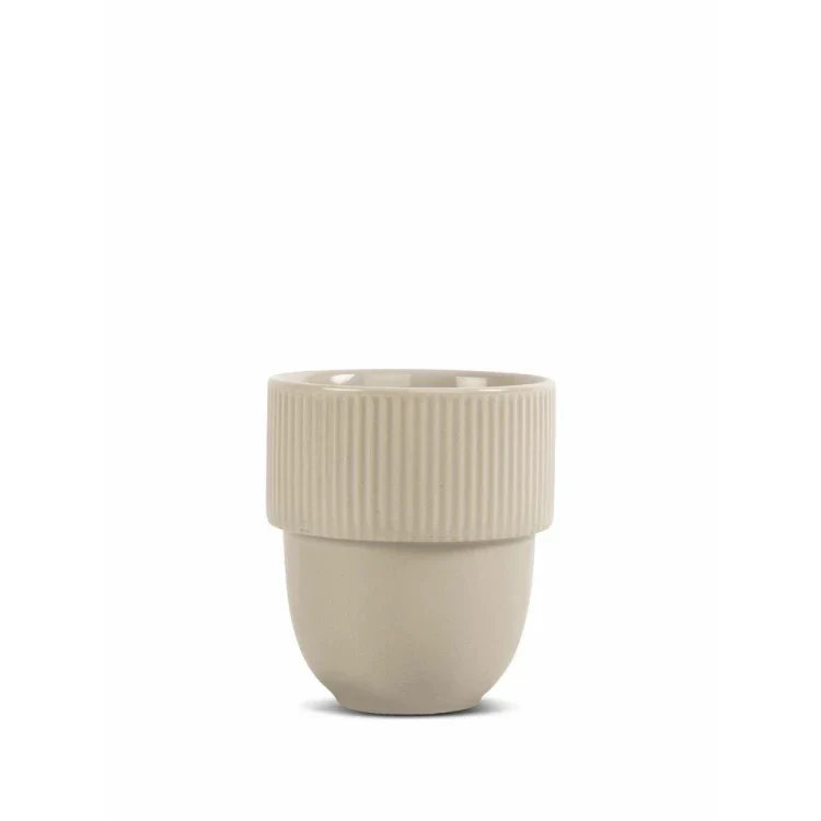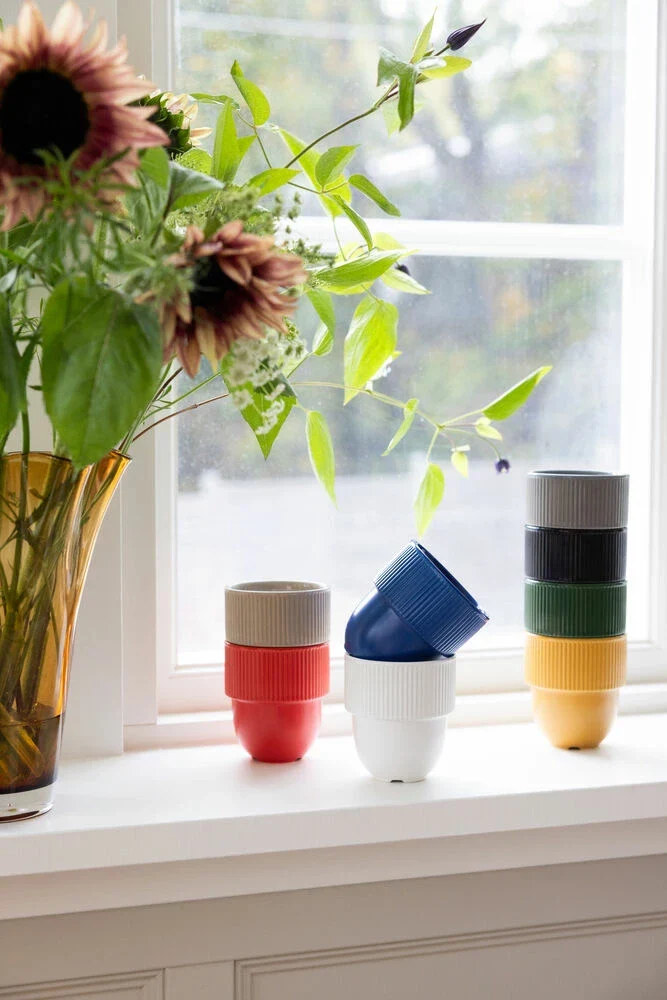 Med Inka kopp ville vi skapa en nätt, lagom stor och stapelbar mugg i naturens många olika mjuka färger. En mugg för vardagslivet och kontoret. Koppen har en rundad fot som ger en mjuk silhuett som bryts av med en maffig kant som dekorerats med Sagaforms karakteristiska rand. Botten har en praktisk avrinningskanal för att inte samla vatten när den stått i diskmaskinen. Tillverkad i stengods.