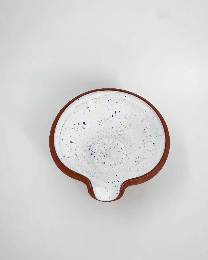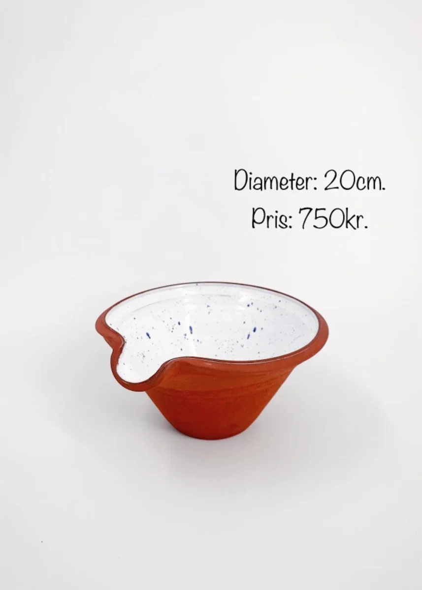 Small but sweet spillkum in red earthenware, white blue spotted glazed inside