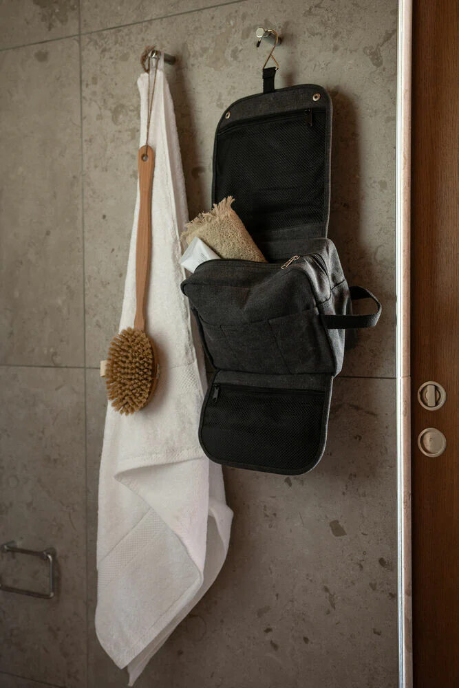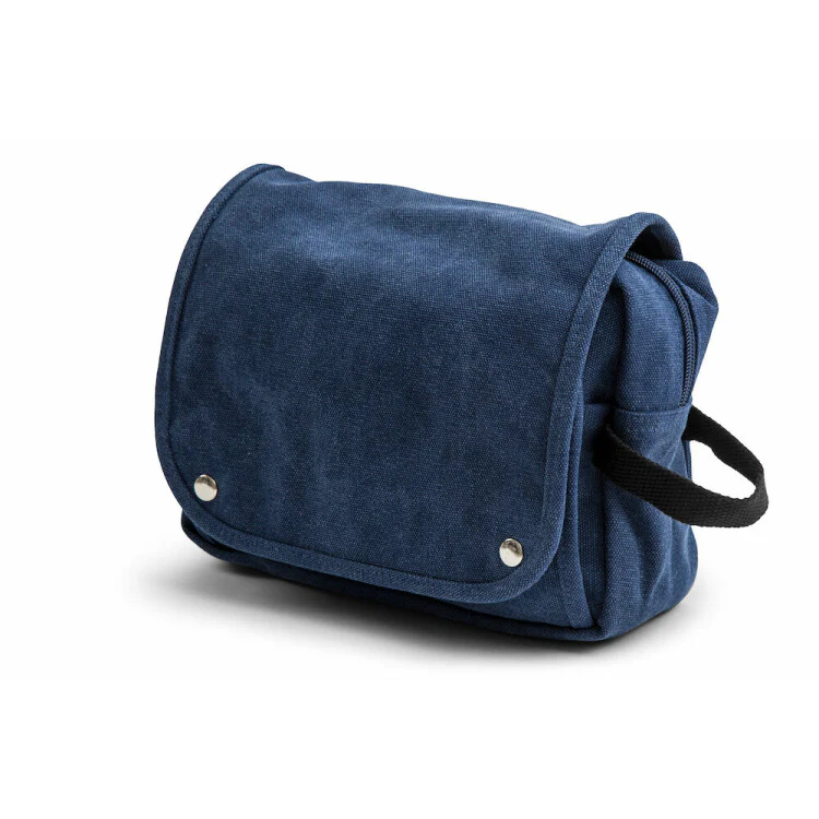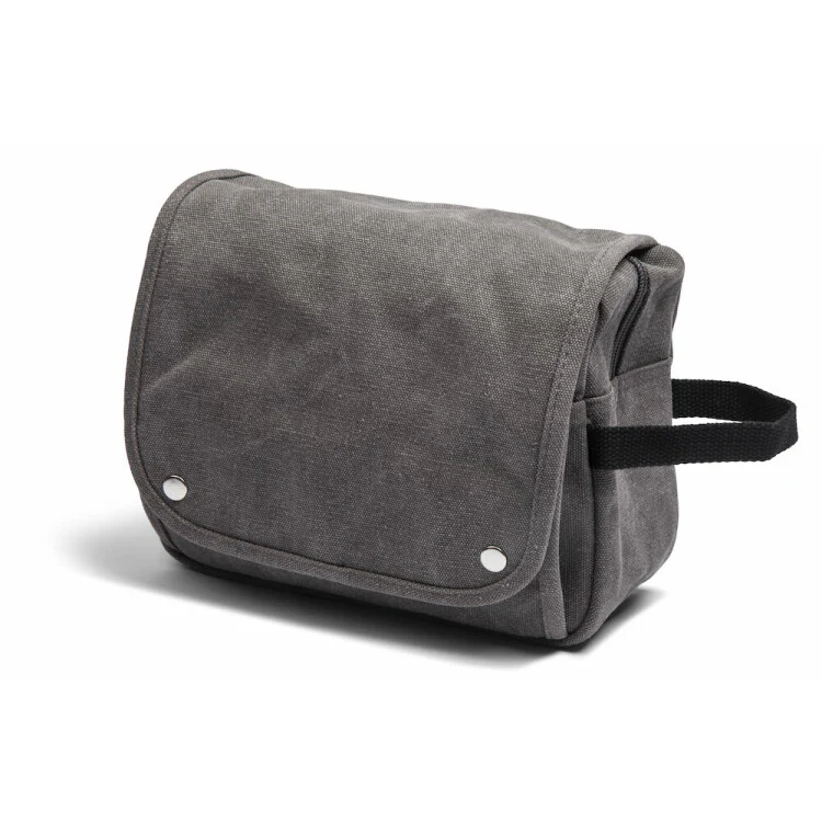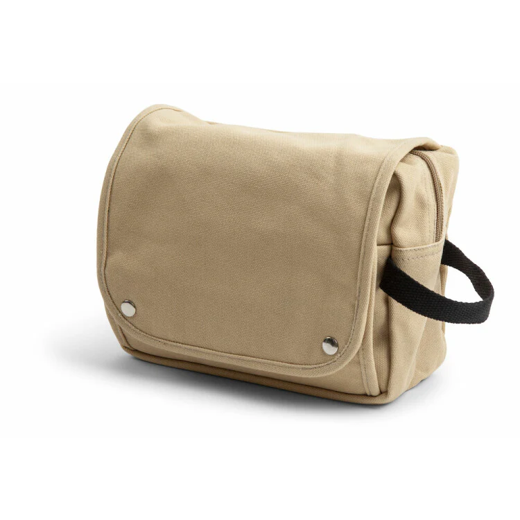 Resenecessär av kraftig canvas, upphängningsbar och med många praktiska fack.
