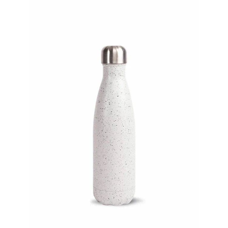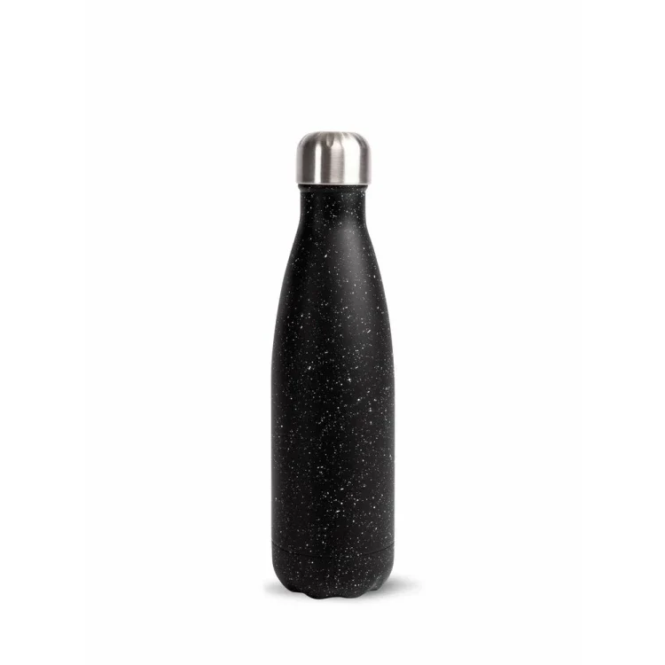 Vår bästsäljande stålflaska i svart med ett vitt stänkmönster. En klassisk och hållbar flaska med modern design. Stålflaskan har unika egenskaper. Den håller kylan i upp till 24 timmar, och värme i 12 timmar. Rymmer 50 cl.