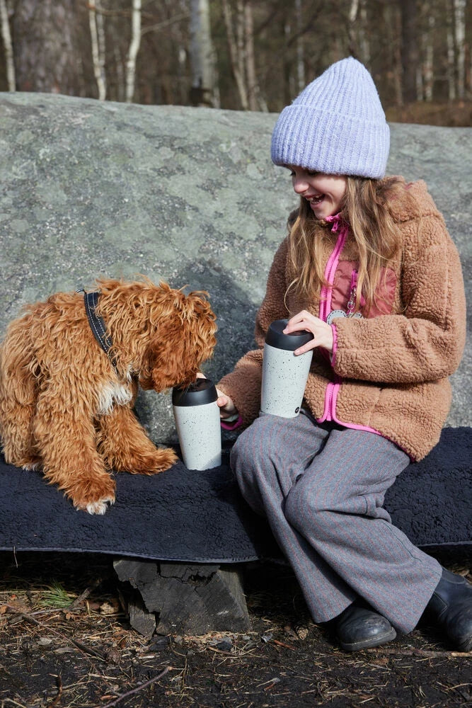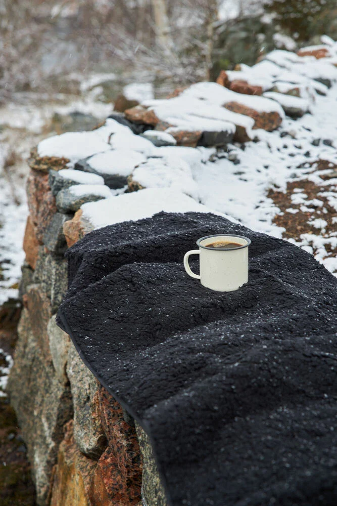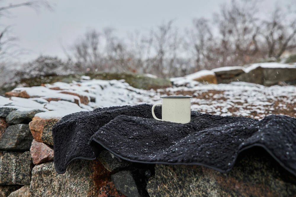 Härlig långsmal pläd med mjuk sittyta i sherpa stil och praktisk vattenavvisande undersida. Lätt att bära med sig tack vare handtag.