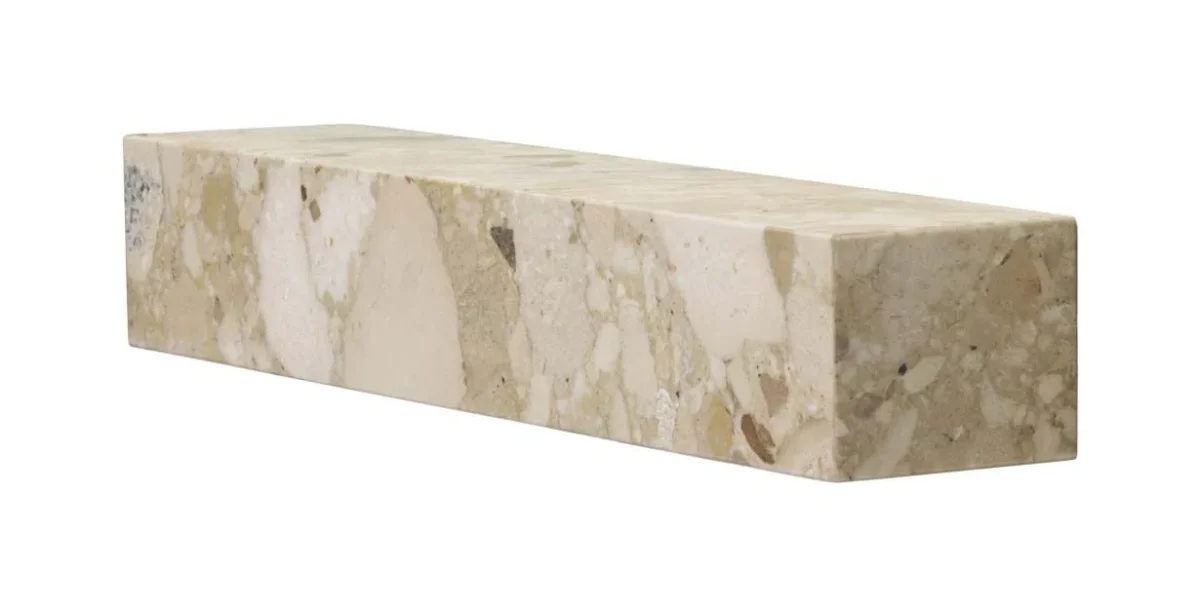 Plinth Shelf är en vägghylla formgiven av Norm Architects för Audo Copenhagen. Marmorn är noggrant utvald för att tillföra ett levande element och skapa ljusreflekterande egenskaper. Hyllans form gör att den kan placeras både horisontellt och även vertikalt för att du ska kunna visa upp dina favoritobjekt.