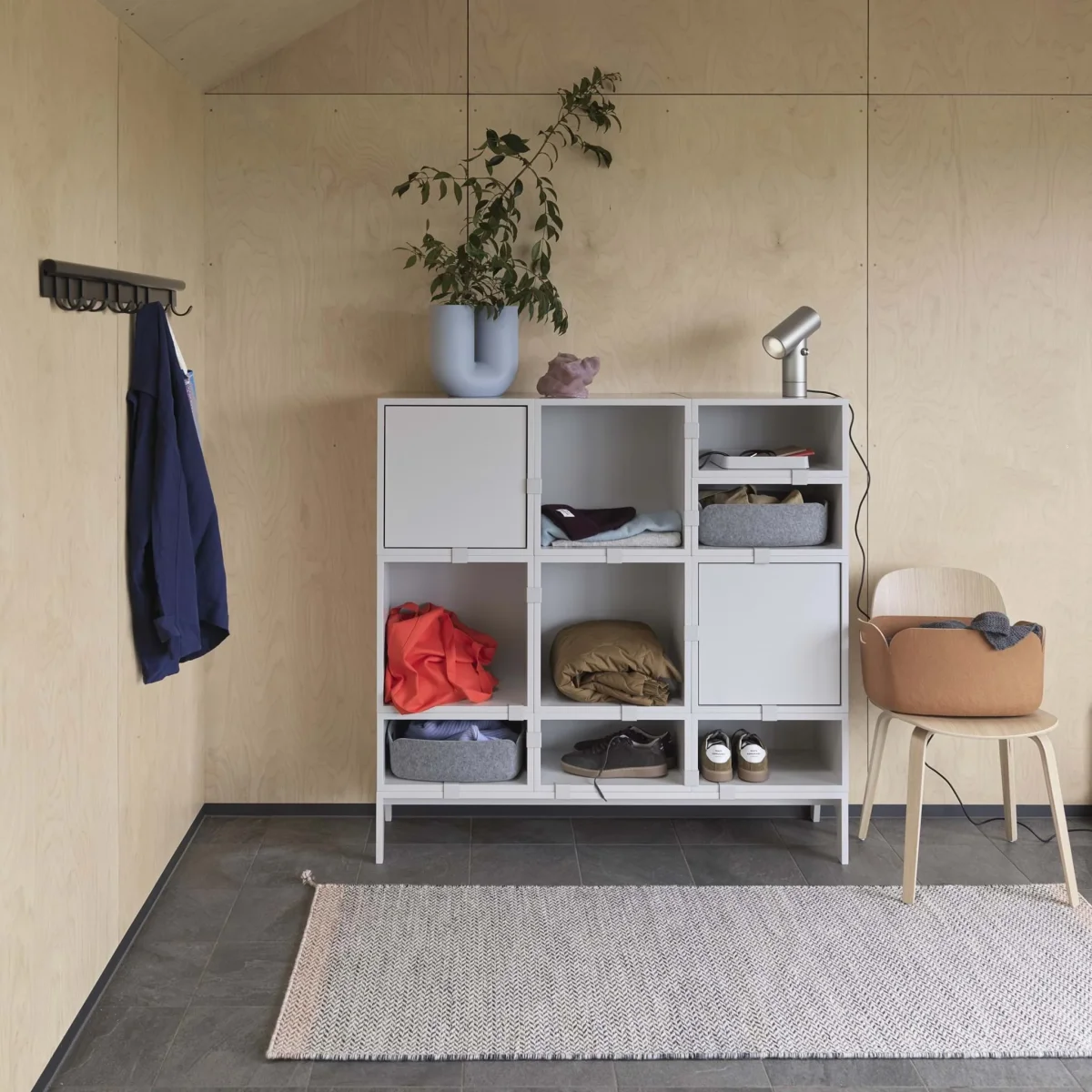 Ply Rug matta formgiven av Margrethe Odgaard för Muuto. Mattan är gjord i 100% nyzeeländskt ull i ett klassiskt zick-zack mönster. Mattan är handvävd med tekniker som hyllar den traditionella vävda mattan. Se till exempel de vävda svansar som finns i vardera hörn.