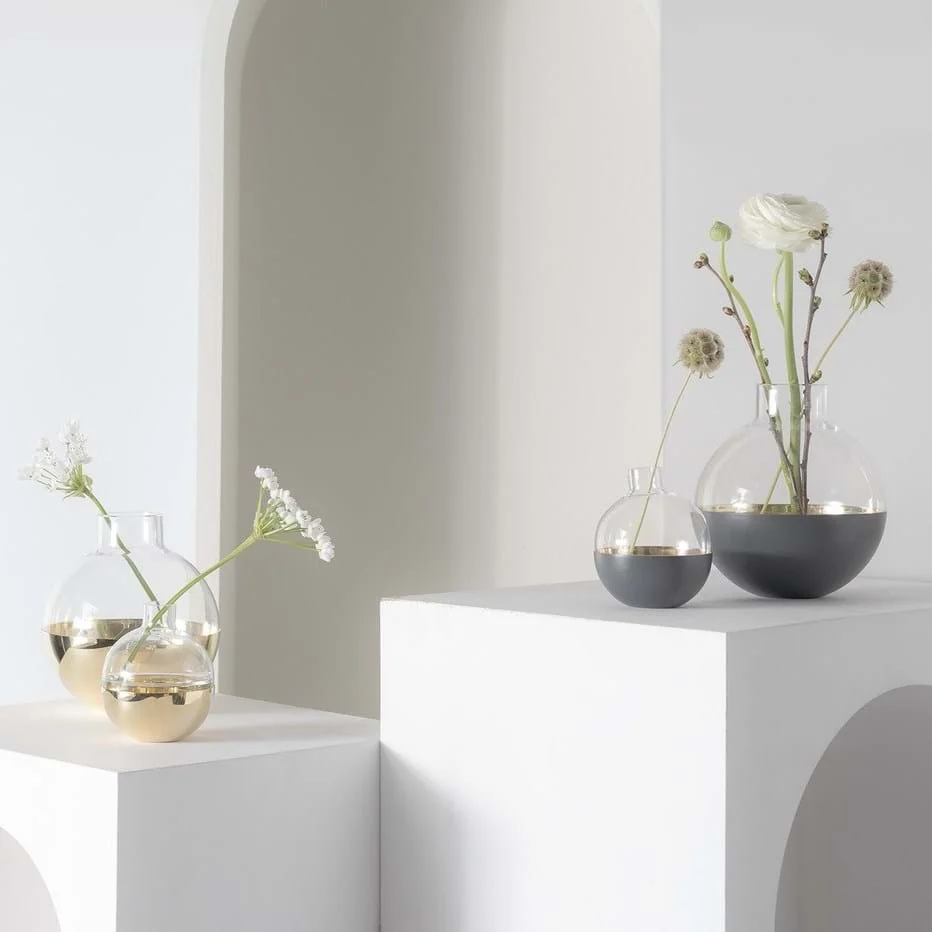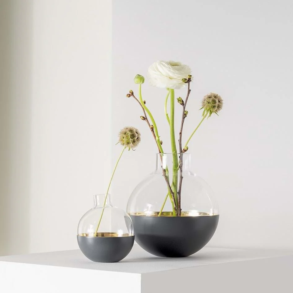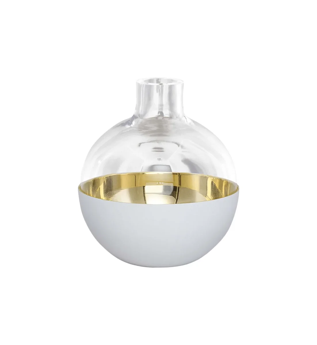 Pomme är en sfärisk vas & ljushållare gjord av glas och polerad mässing. Namnet kommer från franska ordet för äpple, varifrån produkten lånade sin form. Pomme kan användas som en vas för snittblommor och basen som en ljushållare för värmeljus.
