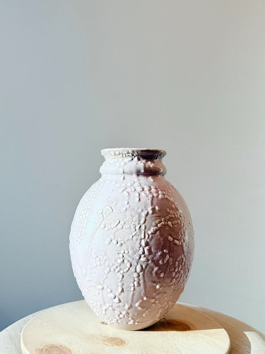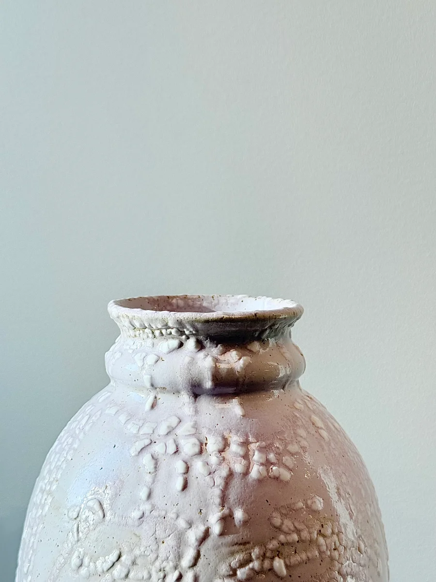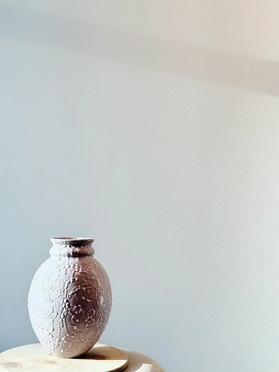 Bilderna är något missvisande i färgen. Se de andra purpur för bättre färgförståelse. Vasens grund är djupare lila. Den är ljus men inte så blek som i dessa bilder.