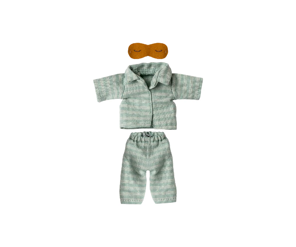 Den mjukaste pyjamasen ser till att pappamusen får en god natts sömn och ögonmasken håller ljuset ute. Detta set passar perfekt till möss i storlek mamma och pappa.