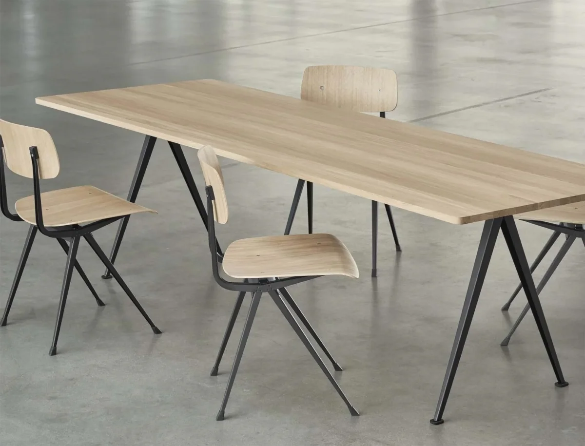 Pyramid Table är formgiven av Friso Kramer & Wim Rietveld för HAY. Bordet togs fram på 1950-talet då Friso Kramer & Wim Rietveld arbetade på Ahrend. Dess rena estetik och ljusa, slitstarka kvalitet gör den idealisk för användning som konferens eller matbord.