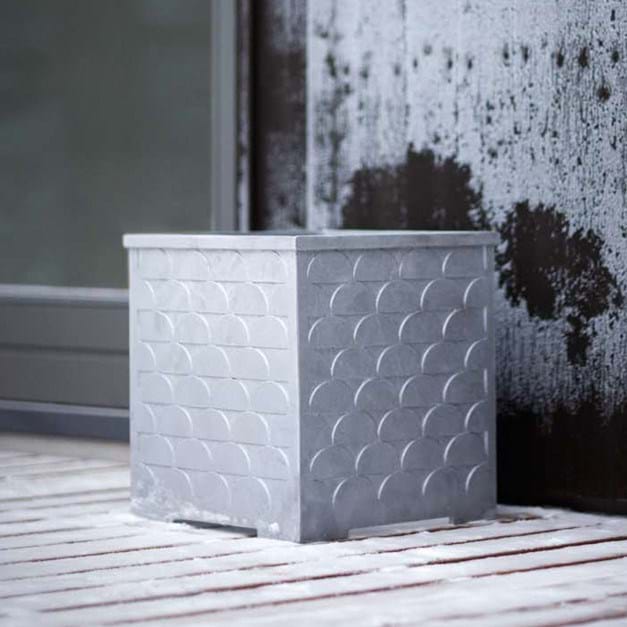 Relief är en kvadratisk kruka med mönster i relief. Hantverksskickligheten har länge varit ett signum för Byarums bruk och varumärkets produkter är tillverkade i återvunnen aluminium, vilket sparar på energi och därmed även miljön. Reflief är designad av Signe Persson-Melin.
