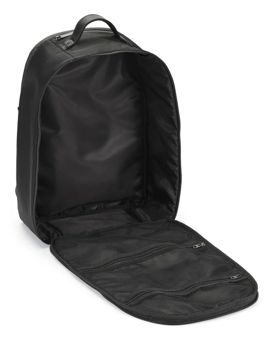 Ryggsäcken har vadderade axelremmar för maximal komfort och ett robust handtag som ger dig flexibla bäralternativ. Ryggsäcken har även ett spänne så att den enkelt kan fästas på ditt handbagage. Tillverkad i slitstarkt, vattenavvisande nylon och utrustad med tejpade dragkedjor, skyddar den dina tillhörigheter även i oväntat regn.