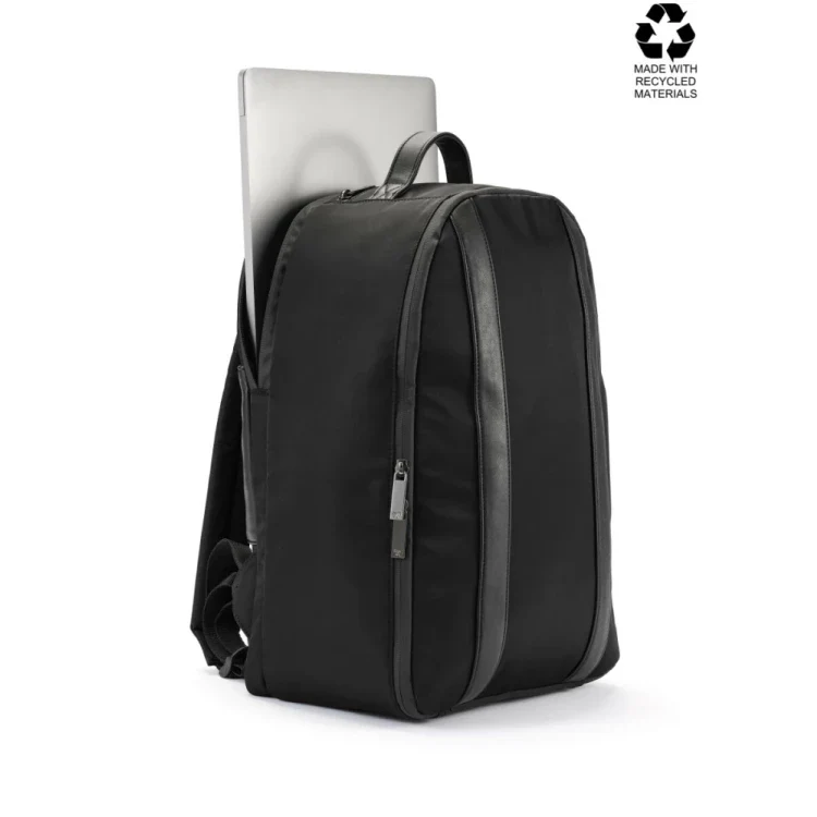 att hålla ordning på dokument och andra nödvändigheter. Med ett yttertyg och foder tillverkat av 100 % återvunnet material, samt detaljer i delvis återvunnet PU, kombinerar denna ryggsäck hållbarhet och stil. Ett medvetet val för den moderna yrkespersonen. Passar datorer till och med 17 tum.