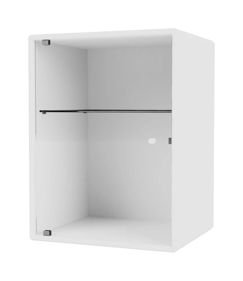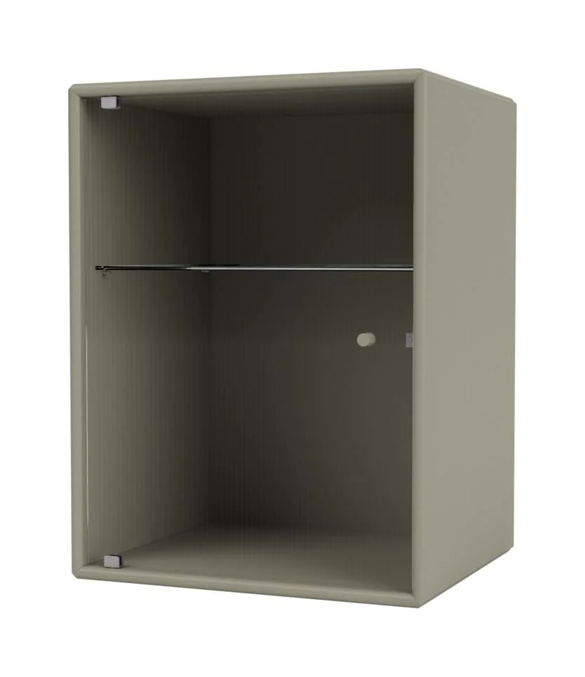 Ripple Bathroom Cabinet av Montana är ett vägghängt skåp med en dörr i räfflat glas och en glashylla inuti skåpet. Ripple är skapat specifikt för badrummet och har därför Montanas vattenresistenta lack för att klara av eventuell fukt.
