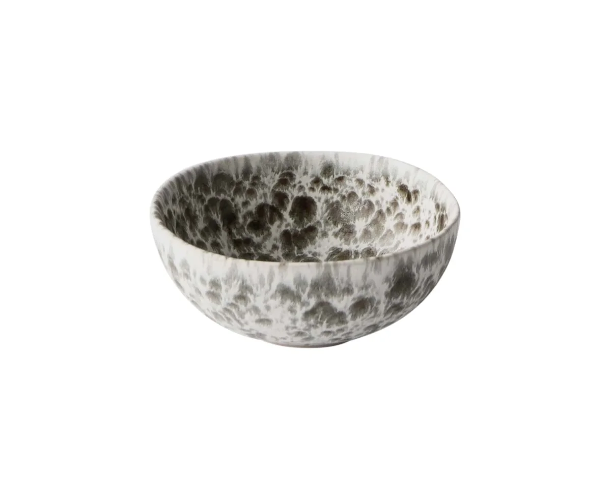 En vacker stänkmönstrad skål i glaserat stengods med en semi-matt finish. Vår Rivoli mini-skål är en liten och mångsidig skål som passar perfekt för mindre serveringar, som exempelvis nötter, oliver och såser. Skålarna är handgjorda, vilket gör att varje skål är unik i färg, form och känsla. Färgerna kan därför variera mellan skålarna, vilket ger din dukning liv och en personlig prägel. Rivoli är lika vacker på egen hand som när den blandas med andra stengodsserier för en ännu mer inbjudande dukning.