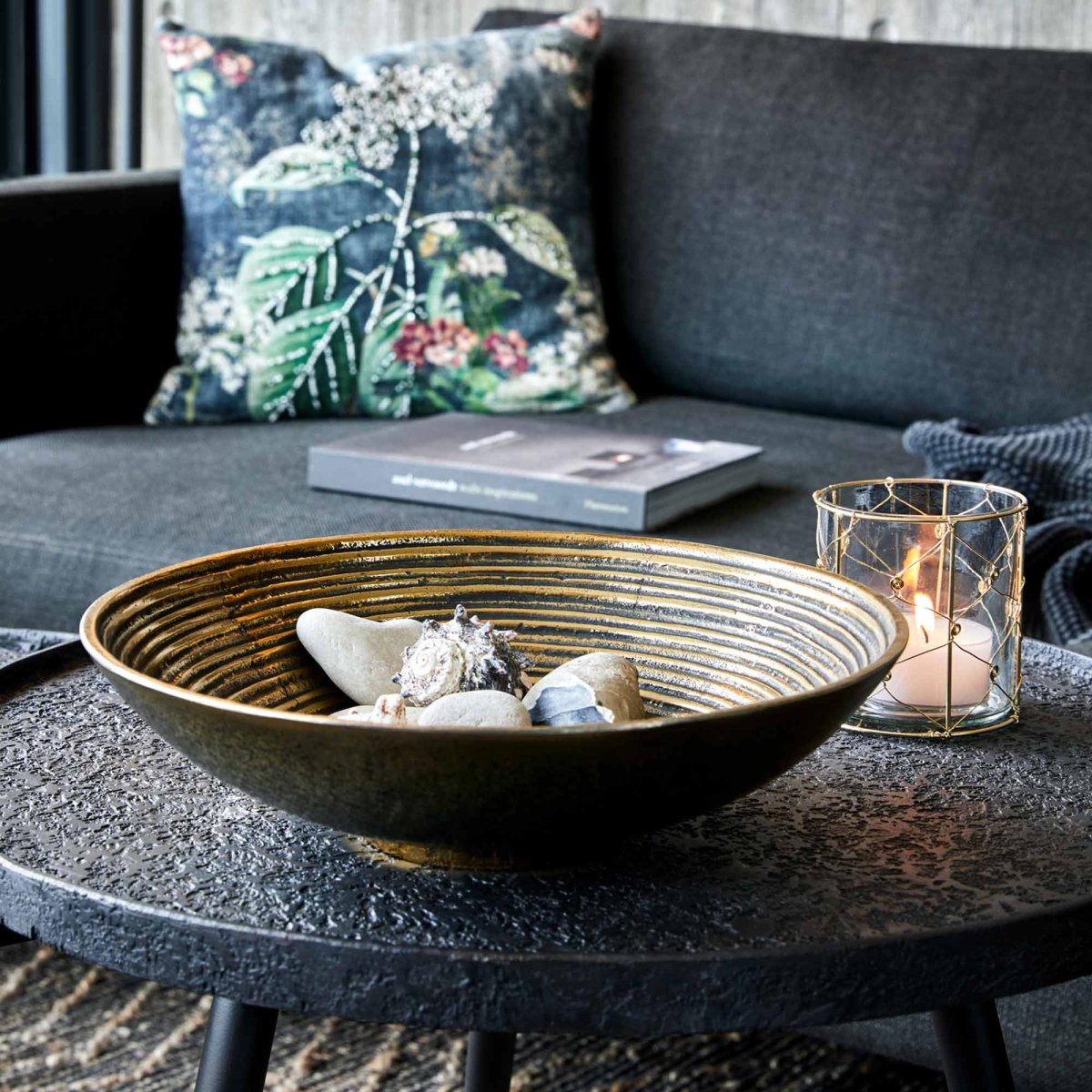 Underbart fin skål i stöpt aluminum med antik guldfinish. Skålen kan användas som en dekorationprodukt, eller till servering. Jättefint att använda som fruktfat.