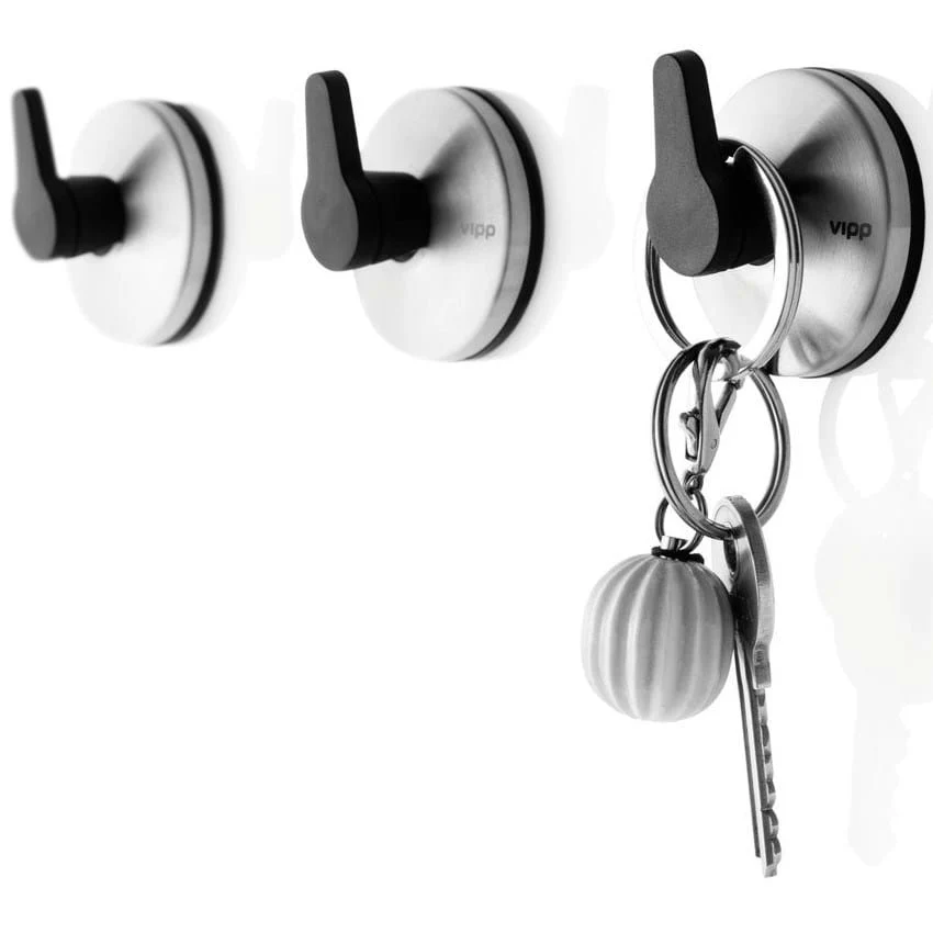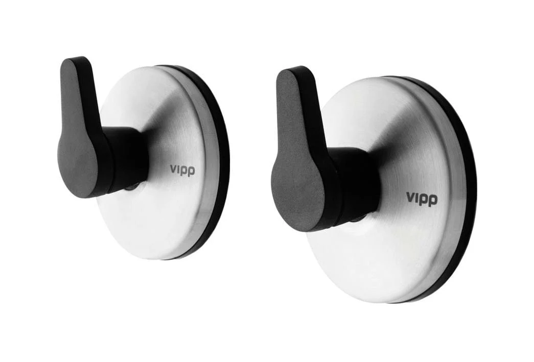 Vipp krok är ett praktiskt hjälpmedel i badrummet eller köket. Montera den enkelt på en slät yta, i t.ex. duschen eller ovanför diskbänken och häng saker du vill kunna ha till hands. Kroken säljs endast i 2-pack.