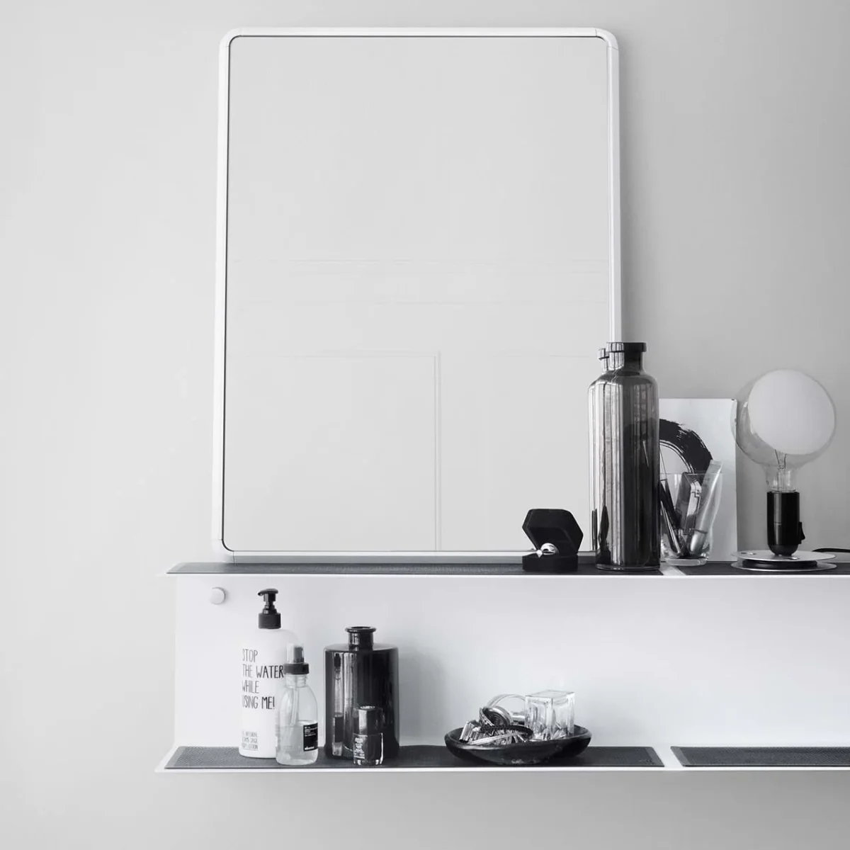 Vipp 911 spegel är utformad med en enkel och strikt design tillsammans med genomtänkta detaljer som passar Vipps serie av badmoduler och som solitär. Spegeln är idealisk för badrum, hall eller sovrum och är tillverkad 8mm våtrumssäkrat glas och med en ram i pulverlackerad aluminium.