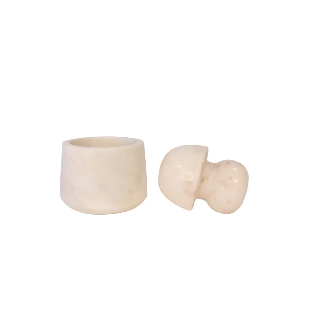 White Marble mortel är ett måste för varje matentusiast. Denna eleganta mortel är tillverkad av vit marmor och kombinerar stil med funktionalitet. Den är perfekt både i köket och vid servering. Morteln är idealisk för att mala och blanda kryddor, örter och nötter, och ger en autentisk upplevelse i matlagningen. Låt White Marble mortel bli en blickfång i ditt kök samtidigt som den höjer kvaliteten på dina kulinariska skapelser!