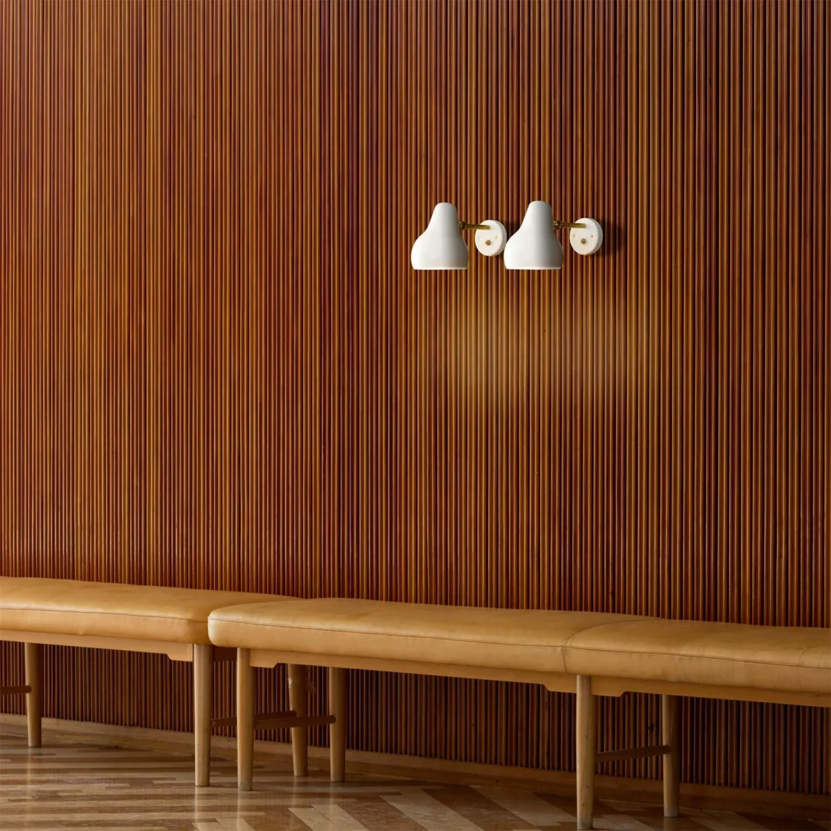 VL38 vägglampa formgavs ursprungligen som studiolampa för Radiohuset i Köpenhamn av Louis Poulsen. Det danska Radiohuset ritades av Vilhelm Lauritzen, en av modernismens och funktionalismens mest begåvade arkitekter. I samarbete med Louis Poulsen skapade han även alla Radiohusets lampor.