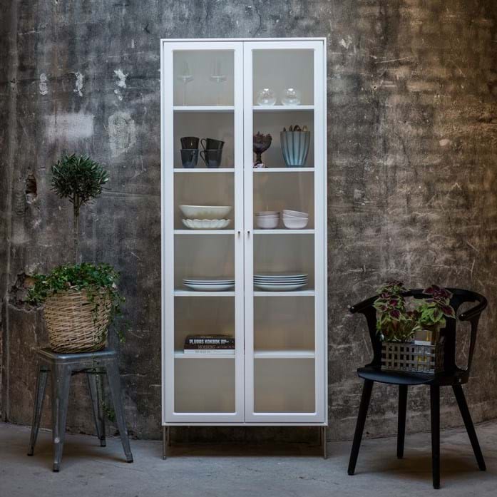 Volt har en skandinavisk avskalad design med vackra och diskreta detaljer. Stilrena frontar, tunna linjer, avrundade hörn med eleganta rostfria ben. Byrån har en höjd på 190 cm vilket ger mycket förvaring men lämnar luft i rummet. Byråns topp passar bra att inreda. Formgiven av Martina Elgemark för svenska Mavis.