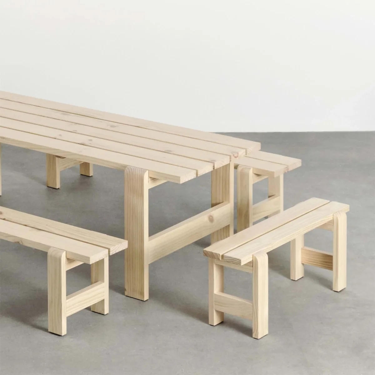 Weekday Collection är formgiven av designduon Hannes & Fritz som en improviserad lösning på bristen på sittplatser vid en middagsfest och förfinade sin idé att skapa Weekday – en kollektion av utomhusbänkar och bord för HAY. Weekday har en enkel robust struktur som ger en varm och inbjudande atmosfär. Perfekt för gemensamma middagar både inomhus och utomhus. Weekdays är tillverkad av starka, hållbara furuplankor i kombination med en vattenbaserade, väderbeständiga ytbehandling gör den lämplig för utomhusbruk i en mängd olika miljöer.