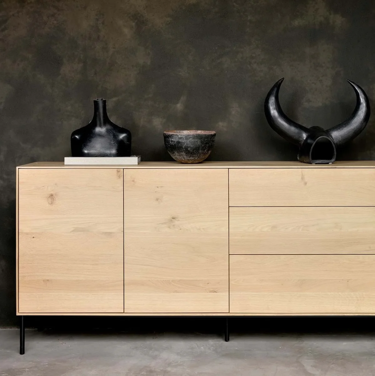 Att föra samman motsatser, olika former och material var det som inspirerade formgivaren Alain Van Havre, när han designade Whitebird serien. Kombinationen av benens runda och mjuka former med de raka och stilrena linjer från skåpets lådor och luckor skapar ett härligt tidlöst utseende.