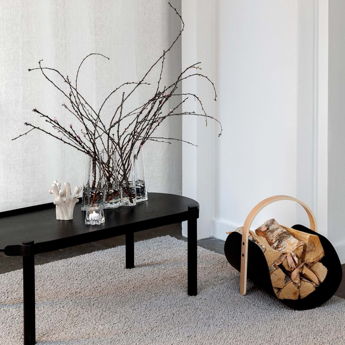 Woody Basket är en robust och vackert hantverkstillverkad vedkorg i ek. Träet som används i hela Woody-serien kommer från FSC-certifierade källor, vilket garanterar att materialet kan spåras och att hållbar återplantering sker. Serien erbjuds i både naturlig ek och svartbetsad ek. Cooee Design arbetar ständigt med att uppfylla både våra egna och våra kunders höga hållbarhetskrav. Med denna kollektion känner vi stor stolthet över att ha nått de mål som vi, tillsammans med seriens formgivare Eddie Gustafsson, satte upp vid projektets start.