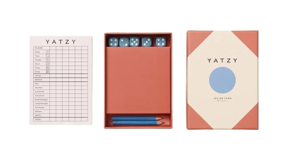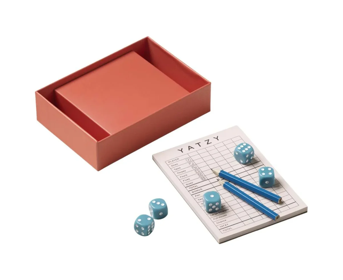 Upptäck ”Play – Yatzy”-set och ge ditt favoritspel en ny, modern twist. Den eleganta designen gör att spelet blir lika fint som en dekorativ detalj som när det används i spel. Setet innehåller fem blå tärningar, matchande pennor och ett 50-sidigt poängblock, vilket ger timmar av underhållning.
