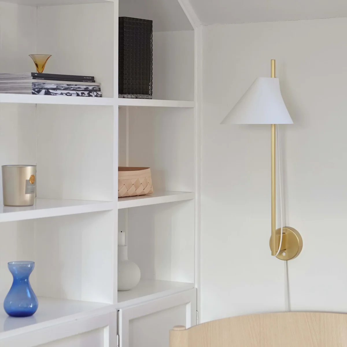 Yuh vägglampa är designad av GamFratesi för Louis Poulsen. Armaturen ger framför allt ett direkt, bländfritt och nedåtriktat ljus. Skärmens vinkel kan ändras för att optimera ljusfördelningen. En smal öppning i toppen av skärmen ger även en mjuk och behaglig uppåtriktad belysning. Det mekaniska systemet ger fantastisk rörelsefrihet, vilket gör att ljuset alltid kan placeras i perfekt position på arbetsplatsen, i vardagsrummet eller på andra platser. Inbyggd LED-teknik ger ett högkvalitativt ljus med steglös dämpning vid 15–100 %. Timerfunktion för automatisk avstängning av ljuset efter en viss tid, med alternativen avstängt/4 timmar/8 timmar.